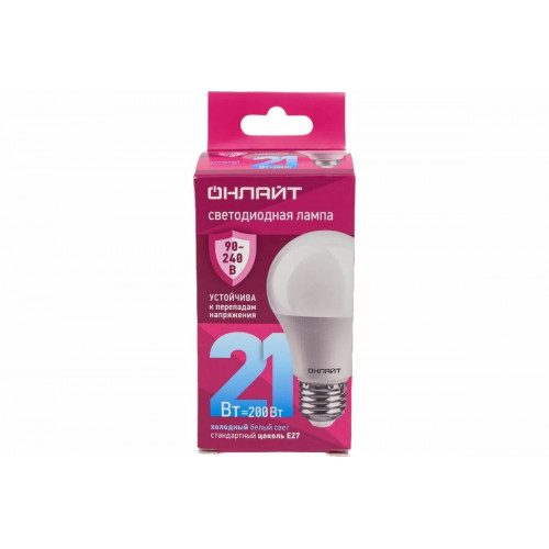 Лампа светодиодная ОНЛАЙТ 90406 21W OLL-А60-21-230-6,5К-Е27